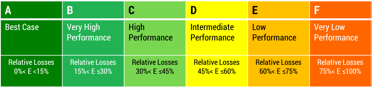 Energy Classification: A, B, C, D, E or F. The classification is made for three different Traffic Classes: