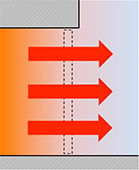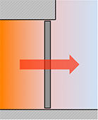 When a door is closed, there is a heat flow that passes through the door. This is defined as the product of its area and the temperature difference between the inside and outside and by what is known as the thermal transmittance of the door or coefficient of heat transmission U.